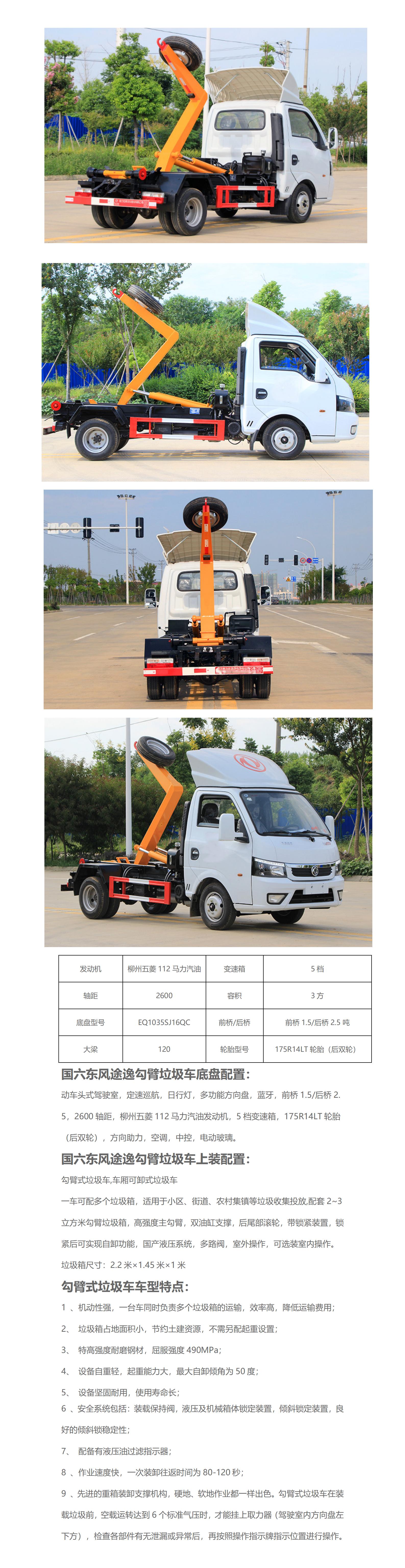 國(guó)六東風(fēng)途逸 藍(lán)牌 2-3方勾臂垃圾車